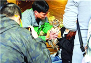 上海野生动物园工作人员将幼虎交到游客手中合影/晨报记者张佳琪