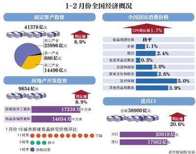 新京报讯(记者沙璐)国家统计局昨日发布的宏观经济数据显示,1-2月份经济运行的主要指标数据,多数指标表现比较积极,国民经济运行稳中向好,其中,房地产开发投资增速提高,土地购置面积增长由负转正。
