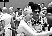 北青报记者找到了这个视频,视频长度45秒,场合是在一个酒店内,视频中的男女大都剃着光头,身着各种颜色的礼服,他们大都忙着自拍或者跟人拍照,仔细听的话可以听到视频里有人在高声呼喊着“一统天下”。在视频的第12秒,有人举着一块红色的牌子,上面写着的是“五行币”的字样。