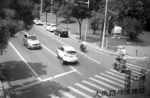 6月9日,淮安街头这辆白色轿车因为违停被查,不仅强行逃离现场,还多次逆行、闯红灯 交警供图