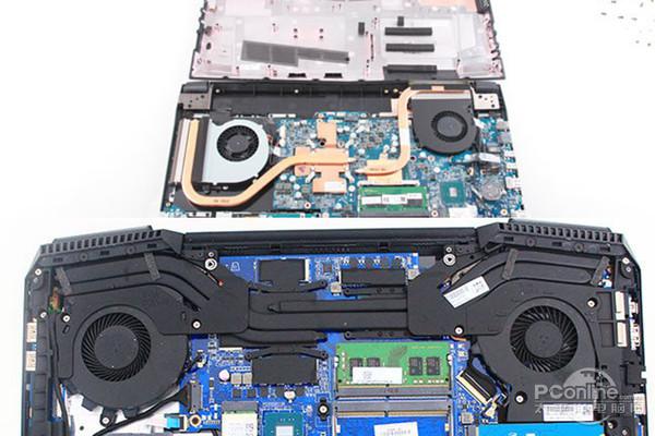 在中端游戏本市场中战神依然占据着重要的位置,神舟战神Z6采用了i7-7700HQ的处理器,搭配上8G的内存GTX1050的显卡已经算是较为大众的游戏本的配置了。可以流畅运行绝大部分的游戏。由于运行一些大型游戏时笔记本电脑的发热是比较严重的,所以游戏本对于散热的要求都很高。我们来看神舟战神Z6的散热模块极其简单,两根散热铜管搭配上两个风扇,简陋至极。对比一下配置基本相同的暗影精灵 3代,差距很明显就出来了吧。