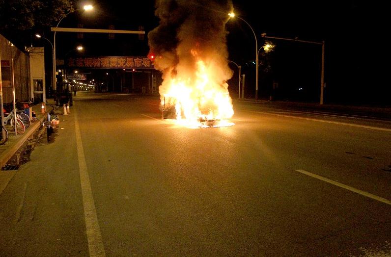 据华夏路消防中队的消防员介绍,他们接到报警后与车主进行了联系,得知火势已经变得不可控,于是加急赶到事发地点,“现场明火很大,黑烟也在不断地往外冒,火不断地向车身蔓延。”由于轿车是停靠在车道上起的火,消防员担心火进一步蔓延,而影响交通,便立即出枪扑救,在扑救的过程中还时不时地发出爆裂的声响,经过紧张的扑救后,明火被扑灭。随后,消防员又对车子进行检查,发现车头和车内已经全部被烧毁。这时,车主拿来后备箱钥匙将后备箱打开,将里面的行李全都拿了出来,所幸行李并无过火痕迹。