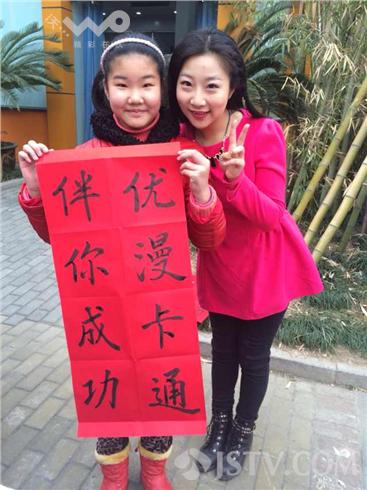 马年春节马上要到了,写副春联提前沾沾过年的喜气吧!今天(1月4日),优漫卡通卫视“新年欢乐送”镇江分队在镇江市青少年宫举行了别开生面的周末活动——集体写春联。镇江的小朋友对优漫卡通是非常熟悉和喜爱,一个女生专门写了“优漫卡通,伴你成功”的对联送给清子姐姐
