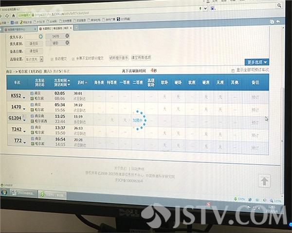 中午11点,记者首先开抢动车组和高铁车票,选的是今年首次开通的南京到哈尔滨G1204次列车,时间一到,按下刷新键,然而,刷新刚完成,订票页面就显示所有票已经售完。