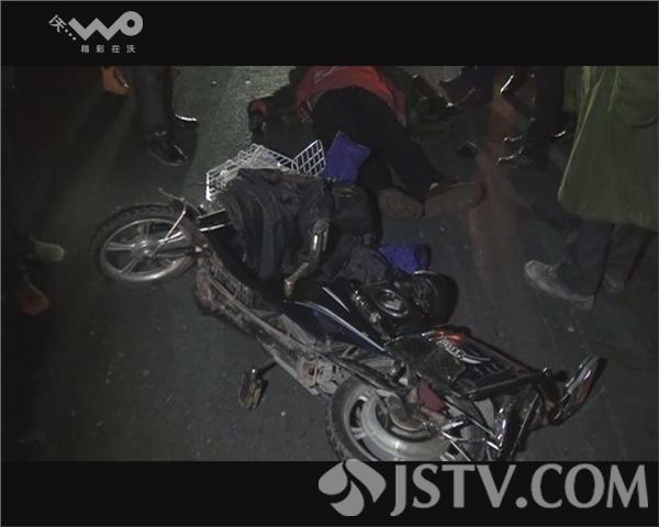 记者闻讯赶到现场时,事故处理民警正在对现场进行勘查,记者在现场看到,事发路段为新建公路,还没有安装路灯,路面上是一片漆黑。一名身穿黄大衣的老妇仰面躺在由东向西的车道里,腹部高高隆起,面部有轻微的挫伤,已经没有了生命迹象,一辆电瓶车侧倒在旁边,车上携带的物品散落在地上,西侧约六、七的米地方,一辆二轮摩托车已被清障人员扶起。老妇的丈夫告诉记者,死者今年才六十二岁,在黄沙港小街上帮人家打工拣鱼的。