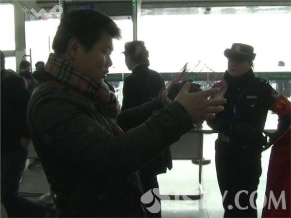 在入口安检处见到,有旅客拎着水杯和饮料罐,工作人员要求他们打开瓶盖,“闻一下”才过关。 “有一位外来务工者把装着煤油的饮料罐用衣服包着,企图通过安检门,在安检时还是被发现了,铁路公安当场予以查扣。”
