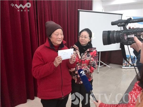 今天下午,《万家灯火》社区行团队来到了韩奶奶居住的淮海路社区,不仅为居民们带来一场健康讲座,还为韩奶奶捎来一个装有5000元现金的新年红包,和广州中山大学教授张峻斌先生的新春祝福。原来,两年前张教授应邀来宁录制节目,曾为韩奶奶的糖尿病提供过健康咨询。今年,张教授再次来到《万家灯火》讲述养生知识,临走之前拜托栏目组一定要把讲课费用捐给韩奶奶。意外收到健康专家的心意,韩奶奶很激动,表示一定乐观坚强的与病魔作斗争。