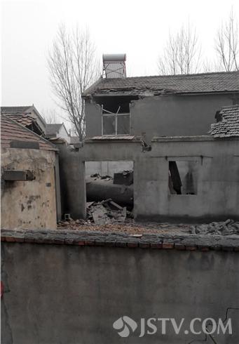 下午3点,有观众反应,在徐州铜山区汉王镇一农户用土锅炉给大棚加温的时候,锅炉发生了爆炸。3点半钟记者赶到现场,被炸塌民房大门被人用锁锁上,门口站了几位村民,看到记者在拍摄便走上前来阻止记者拍摄。