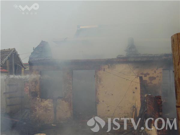 据现场一位妇女介绍:她吃饭后看见老汉将大街上人家未燃尽的烟花收回家,然后就下地劳动,她怀疑是烟花引燃了废品,目前警方和消防正在调查之中,善后工作也同时展开。