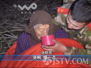 因为池塘里面淤泥比较深,消防员不太好用劲。在其他队员的帮助下,前后花了十多分钟,才把老人拽上岸。估计是在水里站的太久了,老人被救以后,坐在岸边瑟瑟发抖。见此情景,有两位村民赶紧脱下羽绒外套,给老人盖上。