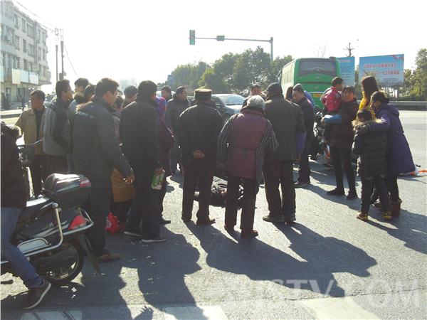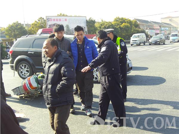 1月22日下午1时许在兴化安西红绿灯路口一由北向南的电动车因为闯红灯与一由西向东的电动车相撞,电动车上一男子头部流血倒在地上,路过的兴化刑警大队干警及时保护现场,并将伤者送往医院,赢得了周围群众的好评。