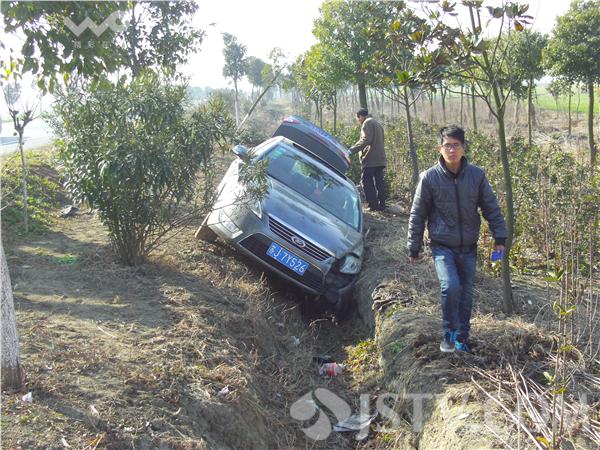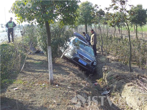 1月24日上午9时许在兴化大周公路车路河大桥南侧,一辆白色小轿车由南向北行驶时,因为驾驶员精力不集中,不慎冲到公路西侧的边沟里,所幸人员并无大碍,交巡警提醒各位车主在回家过年时不要忘记绷紧安全这根弦。