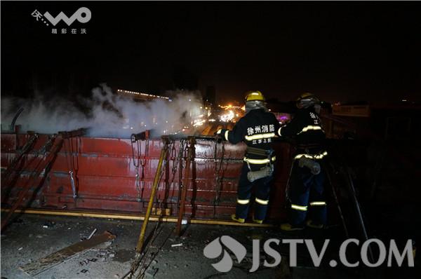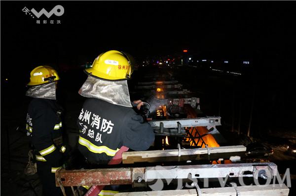 1月25日,晚上7点半钟左右,徐州东三环与和平路路口,正在修建的高架桥护栏突然起火。据了解,起火的原因可能是因为电焊工人在作业的时候留下的电火花,遇到塑料管引发的火灾。这电焊工刚刚离开,就发生了火灾,幸亏没有造成更大的损失,这施工安全真的是不可马虎啊。