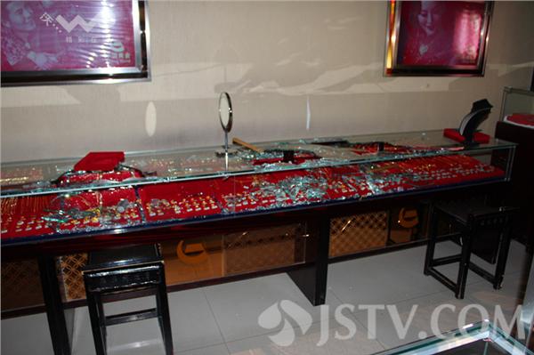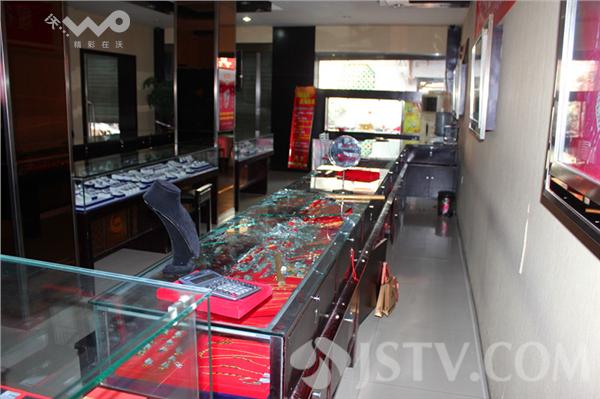 记者来到海州区中大街的中国黄金,现场已经拉起了警戒线,金店的大门紧闭,警方正在现场进行勘察分析。金店的店长亲身经历抢劫过程,她告诉记者,工作人员早晨在清扫卫生的时候,突然冲进来两个戴帽子、口罩的男子,看不清面貌,从怀里拿出锤子就砸向柜台。店员:一进来就上男士项链区了,刚开始砸了一下嘭了一下,我们上前另外一个人用锤子阻拦我们。当时我怕他们拿枪,我就从这里跑出去喊人。两个小偷出来的时候往关庙巷跑去了,我们就跟着老板在后面追,喊抓小偷。