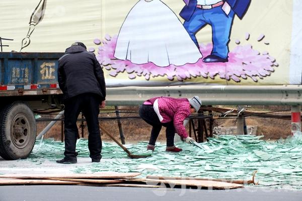 事故发生后,如何第一时间清理掉散落在路面上重达数十吨的玻璃渣成为一个棘手问题。中午12时,终于有了比较满意的解决方案。有地方村民愿意免费帮其清理,并以最终的实际称重按照0.2元/公斤的价格付给回收费。