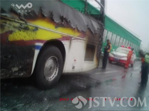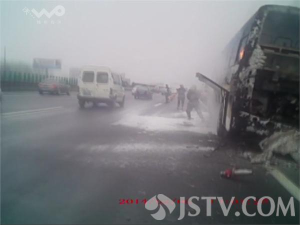 昨天中午12点半左右,在沪宁高速镇江市丹阳段,一辆行驶途中的大客车,突然尾部冒烟,发生自燃。所幸司机及时靠边停车疏散乘客,现场无人员伤亡。
