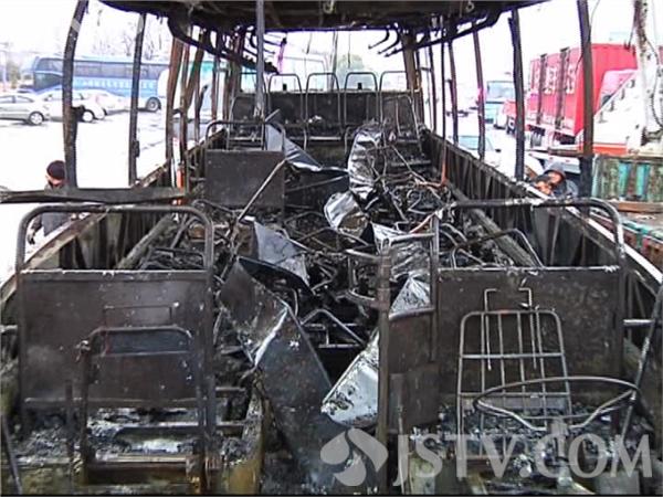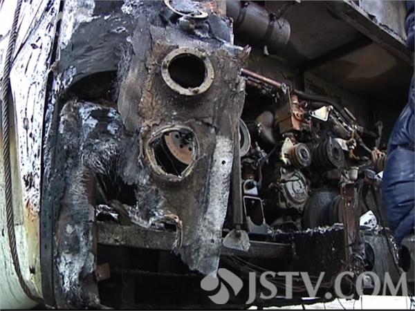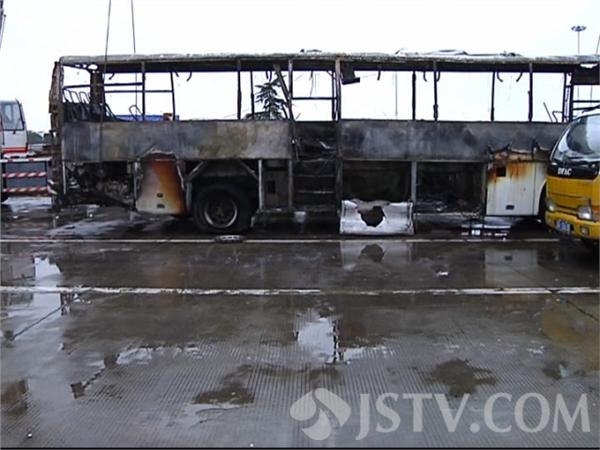 记者赶到现场,事故客车的大火已经被扑灭,车辆被拖离高速,停在附近一处服务区。该车已经被完全烧毁,只剩一个空壳。从现场情况,我们能大致看出当时的猛烈火势。据客车司机倪师傅表示,一开始,他并不知道车尾冒烟了,还在正常行驶。 倪师傅:后面一辆车追过来 超过我 他说你车后冒烟
