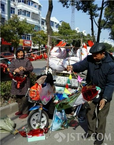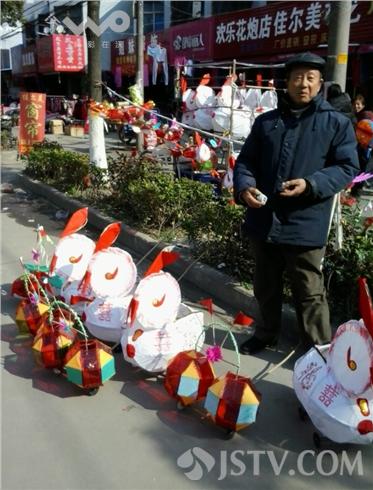 笔者在施桥镇看到卖纸灯的陈师傅,陈师傅跟前陈列全是老式纸灯,兔灯,小挑灯,旋球灯灯,陈师傅介绍;他是隔壁乡镇的,今年66岁,20多岁时就开始学做纸灯了,那时候条件差做纸灯主要是为了生活,学扎纸灯首先要学会劈竹竿,一开始不熟练,手经常被竹节处划破,后来熟练了,劈竹竿时遇到竹节手就会下意识地让开。”陈师傅告诉笔者,当时最难做的是小狮子,尤其是头和嘴,始终做不像,好几次想不学这门手艺,但当时家里穷,不学门手艺不行,最后还是坚持学下去了。近些年来,街头出现了各种各样的塑料花灯、电子花灯,很讨孩子们喜欢,由于传统纸质花灯便宜,能点蜡烛,宝宝们拖着玩也很开心,还是有一定的市场。