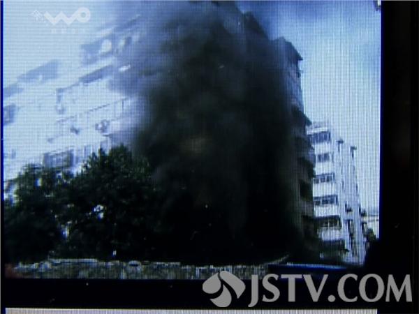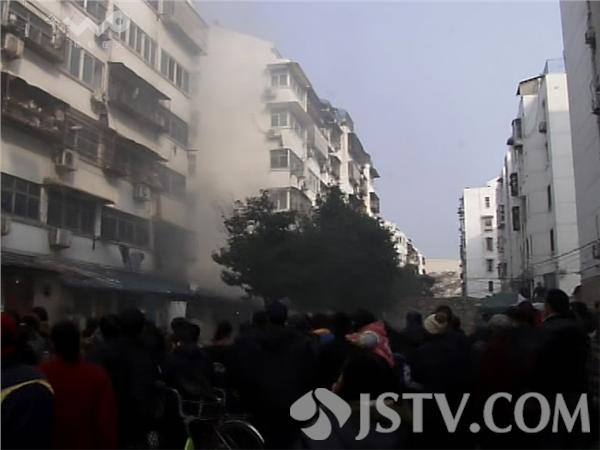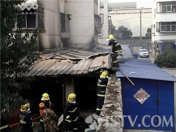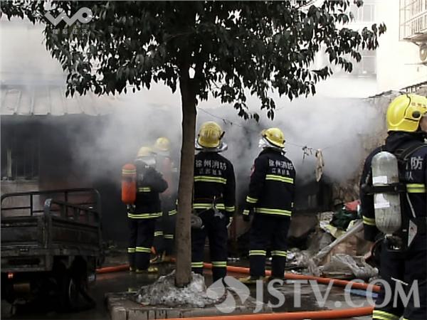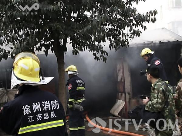 下午4点半钟,徐州市云龙区黄山垅小区内一幢居民楼的一楼突发大火。记者赶到现场时,消防队员正在紧张的扑救,违建房内不时的冒出浓烟。附近居民和消防队员从屋内抢救出了一辆电动三轮车。
