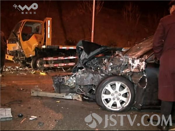 在现场记者看到,轿车一侧车头损毁严重,大拖车车头一侧也被撞毁。昨天晚上虽然下着大雪,可路这么宽,这两辆车是怎么撞到一起的呢?目击市民说,拖车正常行驶时,对面开来的小轿车越过黄线逆行撞上了大拖车,大拖车上的正副驾受伤随后被送往医院救治,而小轿车上只有一位驾驶员踉跄下车,却没有先救人,而是被后面开来的车接离现场。过了一会儿轿车车主赶到现场。