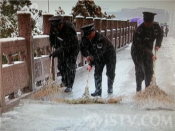 今天凌晨飘下的一场大雪,把南京包裹在一片白色之中,给我们的生活带来了诸多影响。为确保道路畅通,今天早上4点,环卫工人就上路扫雪,城管队员也加入其中。到今天早上10点左右,南京主要道路的积雪基本被扫干净了。