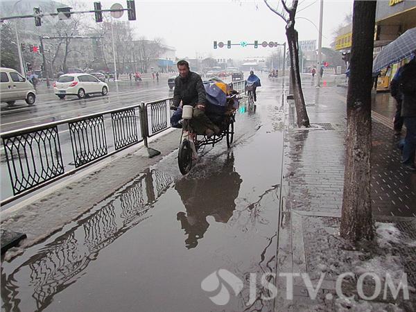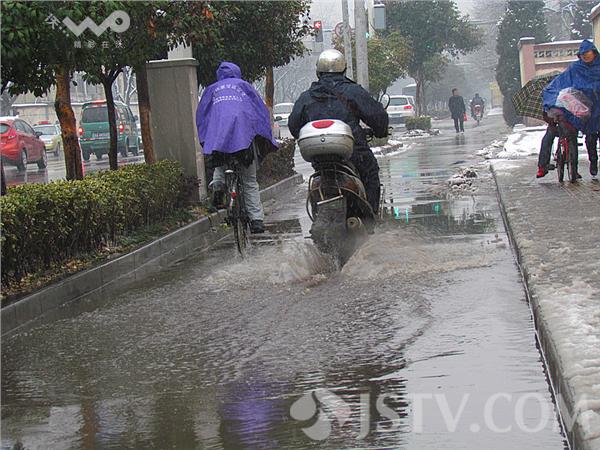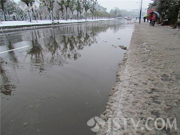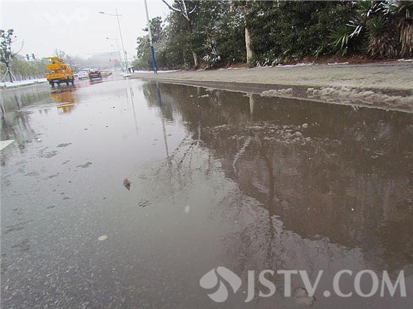 2月18日 ,南京一场大雪,市区多处道路积水,导致城区道路湿滑,让南京城多处路段变成了一条“小河”,这给居民的出行造成诸多不便。