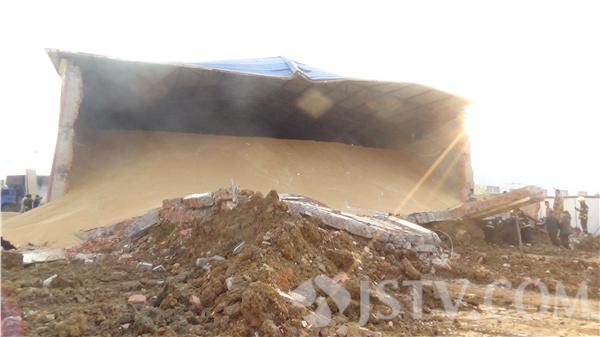 昨天下午3点左右,东海县横沟镇一家面粉厂的一个装有3000吨的小麦粮仓突然发生墙体坍塌事故,墙体坍塌时,有2名工人正在施工作业。事故发生后,一人成功逃生,另一人则不幸被埋在坍塌的墙体下面。经过消防官兵7个小时的挖掘,被埋工人被成功解救。