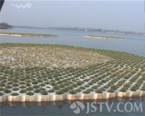 因为水库是旅游景区,为了让水库中的生态浮床不影响景观,专家们把生态浮床设计成了奥运“五环”标识图案,没想到,这一设计方案实施后效果还真不错。