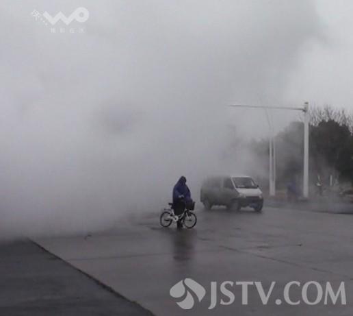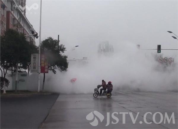 2月25日上午11时,多位淮安市民爆料称,南昌路与珠海路交叉路口西南侧一处热力蒸汽管道发生爆裂,大量蒸汽从地下管道中冒出喷出几十米高,由于大量蒸汽飘向马路,导致路面被蒸汽笼罩,交通出行受阻。