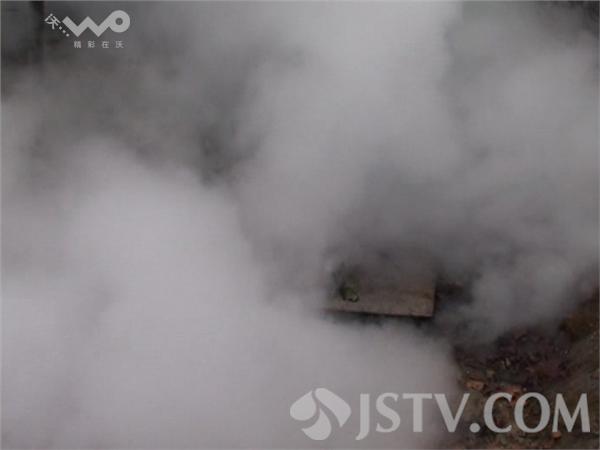 由于路面被蒸汽笼罩,能见度瞬间为零,整个红绿灯都被蒸汽包围若隐若现,为了安全许多机动车也不得不打起了雾灯,骑车市民也是推着自行车行走。经过报警30分钟后一名抢修人员来到现场,这名抢修人员透露,这处管道是附近居民区的供热管道,马上将组织人员到现场停气维修。臭味是因为管道旁有化粪池,这个味道是化粪池的臭味,我们蒸汽是不可能臭的。