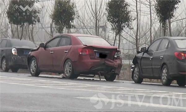 2月25日下午2点钟左右,在射阳县耦耕办事处境内发生一起离奇追尾事故,一辆送亲的轿车因驾驶员开车低头拣东西,结果将前方路口等待绿灯通行的自家四辆婚车全部撞坏,所幸没有造成人员伤亡。
