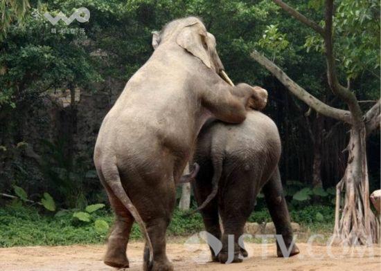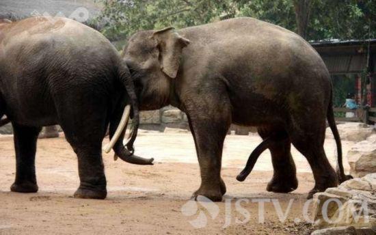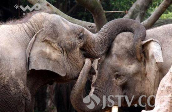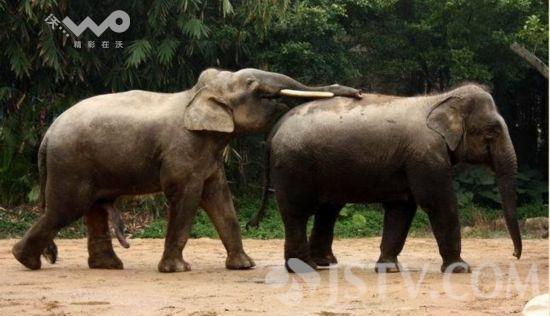 大象的求爱方式很怪,雄象用鼻子先在雌象身上抚摸,而后鼻子互相纠缠,有时把鼻尖塞到对方的嘴里。