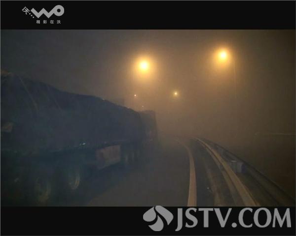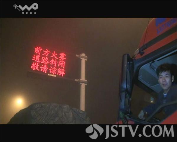驾驶员同期声:(驾驶员)能见度真的太低了,(记者)大概有多少啊能见度啊?(驾驶员)我估计能见度就二十米吧。