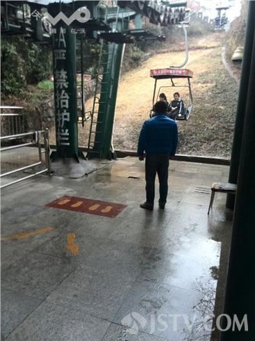 穿梭林海的感受固然美妙,但现在正值初春季节,温度偏低,天空中又下着小雨,这可让很多来游玩的市民下了索道,就冷得直跺脚:
