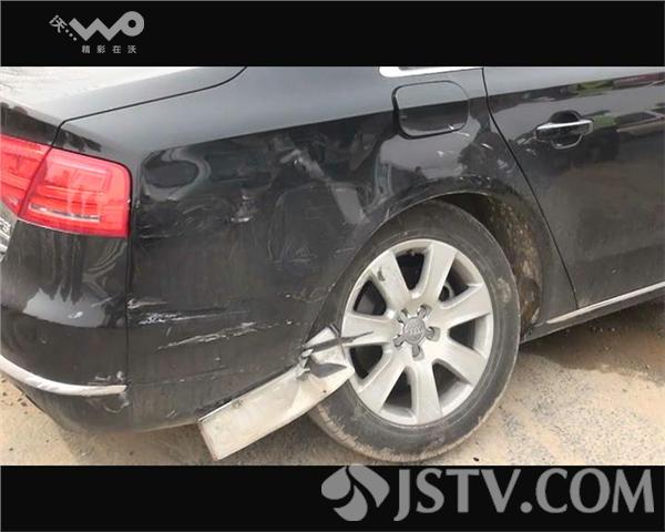 记者随120救护车赶到现场时,受伤的女性乘客还瘫坐在面包车里,面部有鲜血,地面上还有几滩血迹,事故处理民警正在询问事故发生时的相关情况,一辆面包车头朝南斜停在由北向南的车道里,车前右角处破烂,大灯脱落,保险杠断裂,引擎盖凹陷变形,一辆还没有上牌的黑色奥迪轿车头朝北逆向斜停在由北向南车道的边上,右后轮搭桥断裂,车轮变形,面板凹陷,破碎的塑料挡板散落一地。面对记者的采访,两名驾驶员都互相指责对方的速度太快,争抢通行岔道口,才导致事故发生的。