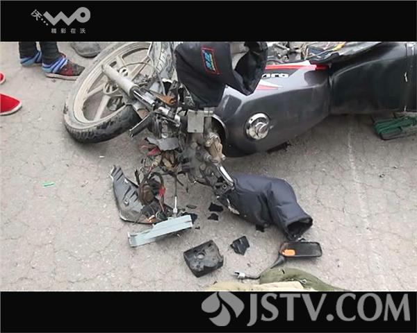3月2日下午3点半钟左右,在射阳县新坍镇胜利桥小街的圣大路上,一辆由东向西行驶的大架子摩托车因避让不及,与一辆逆向停在路边的小架子摩托车发生碰撞,事故导致两辆摩托车上的四名驾乘人员不同程度受伤,其中两人伤情严重,两辆摩托车基本损毁。