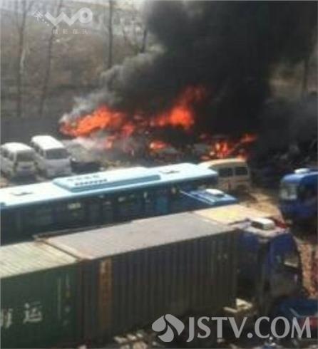 3月3日中午12:27分,淮安市枚乘路一停车场突发大火,由于火势蔓延较大,滚滚黑烟将半幅天空染黑。