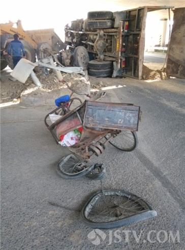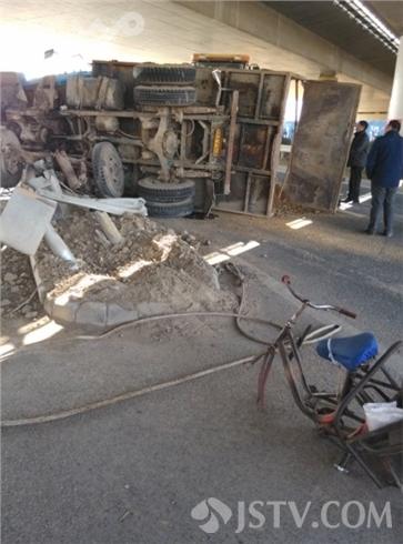 3月3日上午11点左右,淮安市G205公路与武黄路交叉路口处,一辆由北往南行驶的运沙车因为避让一辆闯路口八旬骑车老人,猛打方向盘导致车辆瞬间冲上护栏侧翻。事故发生时幸亏运沙车及时猛打方向盘紧急避让,八旬骑车老人这才死里逃生捡了一条命。