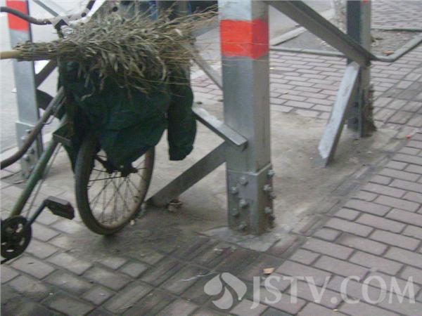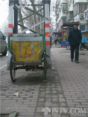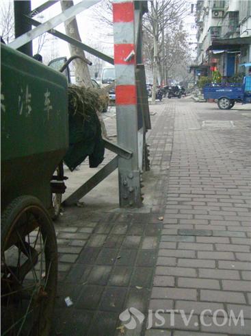 据旁边店家元通快递的工作人员说,这个铁架其实在盲道设立之前就有了,盲道是后来设置的。为什么明明有高压铁架站立于此,还在在铁架下设立盲道呢?难道要让盲人朋友来此碰壁吗?据称,盲道这样设置显然是为了省劲,铺个直的不比铺个绕弯的更省劲吗?如此马虎的直线盲道,其实比没有盲道更坏,遇有盲人经此通行,非得碰壁不可啊!呼吁有关部门能尽早纠正此处的直线盲道,使盲道能绕过铁架拐弯通行。 3.3日摄