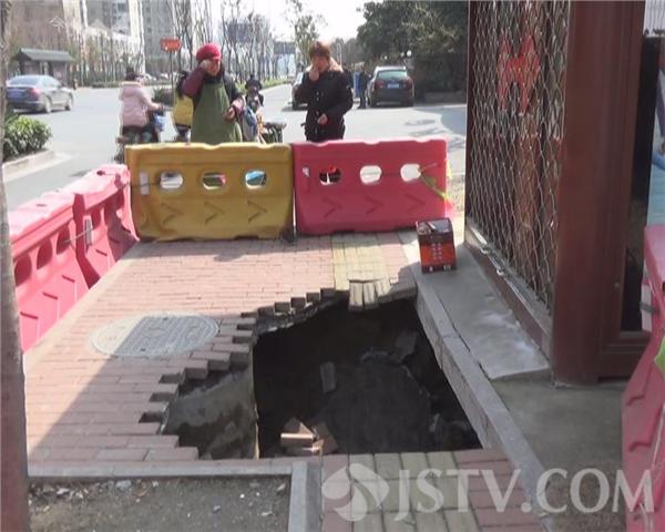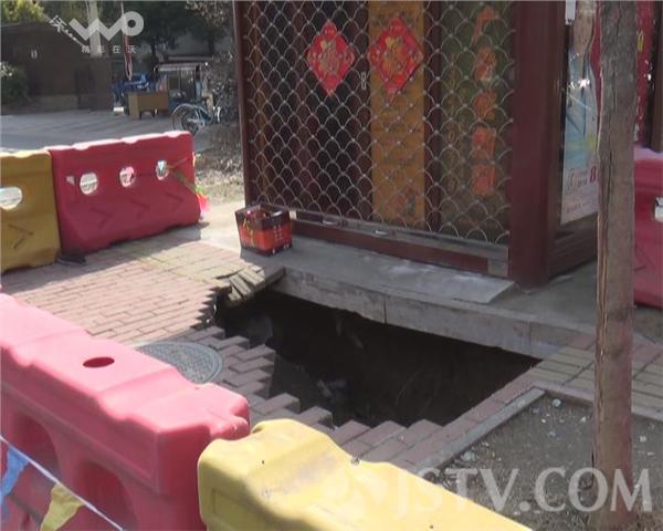 今天上午9点多钟在扬州月亮圆小区东门附近,一座邮政报亭门口的人行道突然坍陷,站在门口晒太阳的老板娘张女士也跟着掉落坑里,随后被人发现送医院,检查为左胸部多根骨头断裂,需要住院治疗,坍陷原因怀疑雨水管道漏水,坍陷路段泥土被冲刷导致突然塌陷。