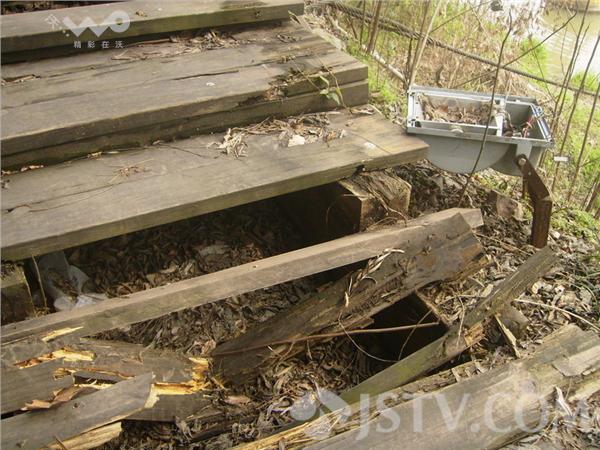 码头边上的木栈道多处木条缺失、断裂,两侧木栏杆也出现了大幅度的倾斜,仿佛随时都会倒塌下来的样子。栈道边上的两个景观大灯连玻璃罩都“丢失”了,里面灯泡全无,电线也被割断,显然遭遇盗窃很久了。虽然码头里面由于大门紧锁而保存完好,但是码头外面却多处设施残破不全,两者形成了鲜明的对照。