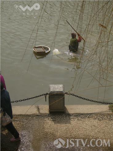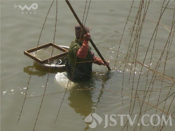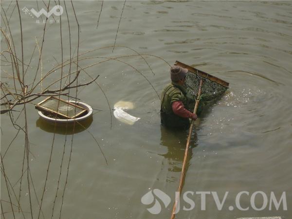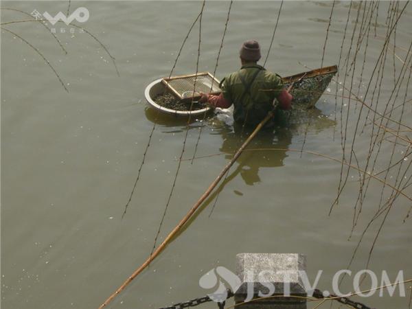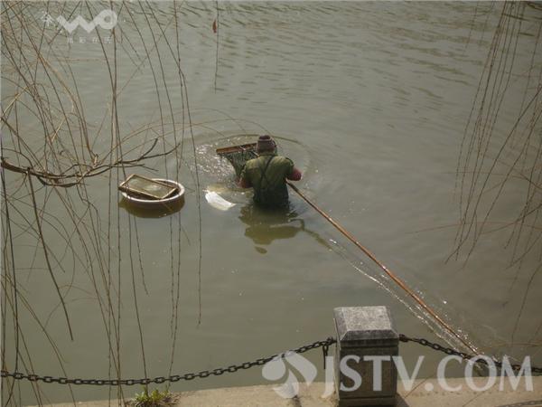 今天中午,笔者经过秦淮河雨花门段时,发现河中竟有一“渔民”正在卖力的用兜网捞取螺蛳,身边“紧随”着一漂浮的大号水盆,盆中螺蛳已盛满大半,虽然如此,渔民捕捞的效率仍然很高,不一会就捞上一网兜,持续加入到旁边漂浮的水盆内。