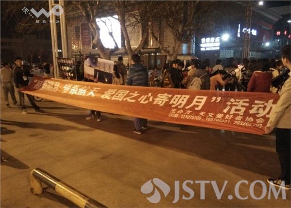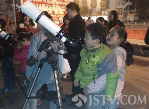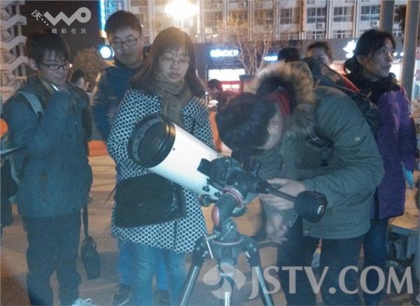 灿烂星空一直吸引着人类好奇目光。今晚来自淮阴师范学院大学生天文爱好者们,一起相聚在市体育馆门前广场,架起天文望远镜,免费让市民观看天空中各种神秘莫测天体,引发众多市民的围观。