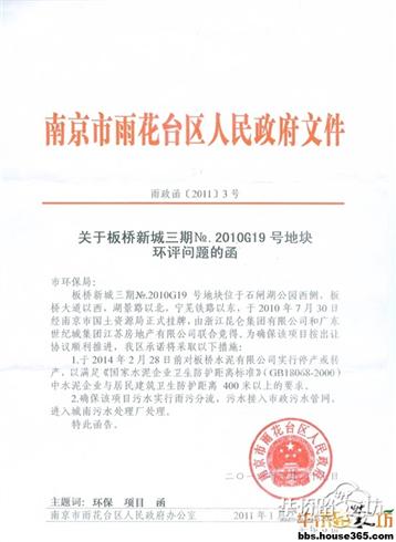 2011年,南京市民杨先生在板桥新城的金域华府楼盘买了一套房子,在该楼盘的《环境影响报告书批前公示》中,南京市环保局方面明确表示:“本项目地块北角约130米为板桥水泥厂,其卫生防护距离为400米,如果想要楼盘项目建设正常进行,板桥水泥厂必须停止生产。”而为了确保这个房地产项目的正常推进,雨花台区政府在2011年1月承诺,2014年2月28日之前对板桥水泥厂实施停产或者转产。