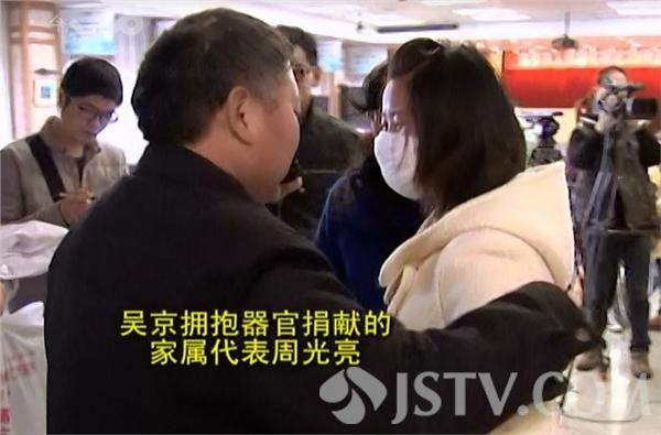 眼前这位微胖的小姑娘就是吴京,很难想象,就在两年前,她因为患上了尿毒症,四次病危。幸运的是,她等到了肾源,在省人民医院完成了肾移植手术。如今,健康幸福的她,一直有个愿望:拥抱捐献者家人,对他们说声谢谢。按照规定,器官捐献者家属和受益者是不能见面的。不过,为了完成小姑娘的心愿,南京市红十字会找到了器官捐献的代表--周光亮。去年,零距离曾经报道,这位父亲在儿子周亢临终前,捐出了他的肝脏,挽救了另一个年轻的生命。今天,他作为器官捐献者的家属代表,接受了吴京的拥抱。
