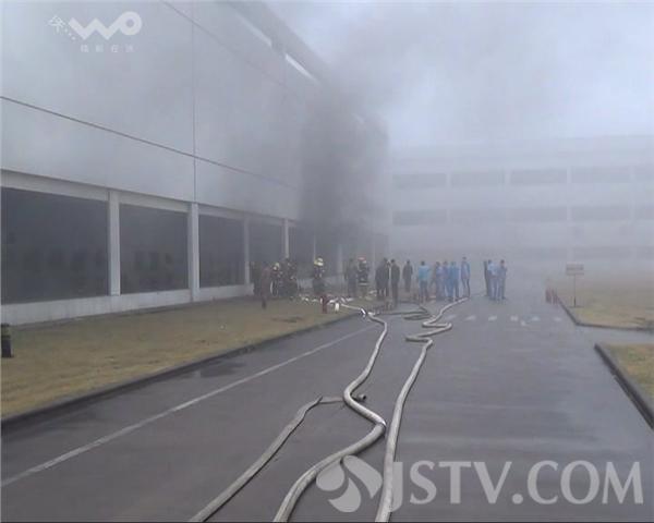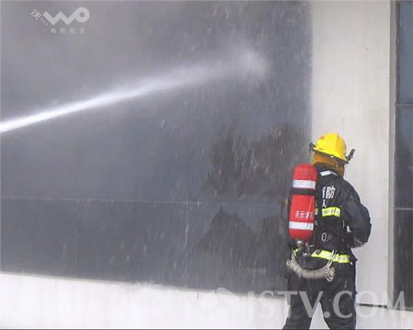 中午11点,当记者赶到时,整个厂房被滚滚浓烟所笼 罩,周围空气中弥漫着刺激的气味,让人难以忍受。为了方便 救援,消防队员正拿铁锤敲碎玻璃,并用高压水枪对车间内部 进行降温。