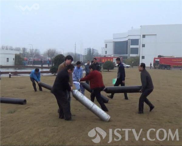 为了防止意外发生,在消防队员的指挥下,工厂工人 们把仓库内存放的十几个氧气罐全部搬了出来。工人小张说, 事发时他正在配胶,可不知道怎么的,其中的溶剂突然着起了 火。