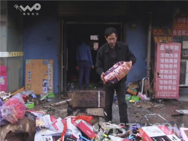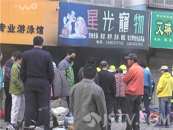 笔者赶到现场时,消防队员正在扑救,宠物店内不断的往外面冒着浓烟,靠近店门的部分物品被店主抢救出来。目击者告诉笔者,早上6点半钟的时候,发现宠物店内在往外冒烟,于是就按照门头上的电话打电话通知了店主,店主这才及时赶到现场。