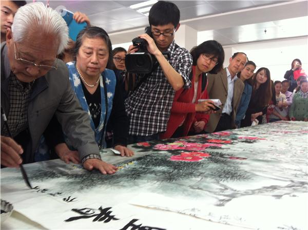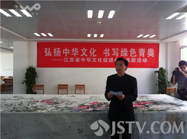 今天(28日)下午,江苏省中华文化促进会在南京特殊教育学院,举办“弘扬中国传统文化,书写绿色青奥”活动,开启了“2014中华文化走基层”系列活动,中国写意花鸟画金陵组合现场创作了一幅大画献礼青奥。