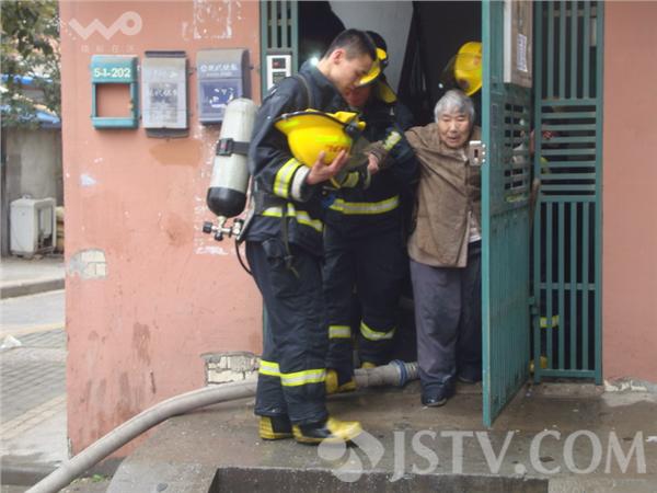 随后,有居民发现打手机报警,十几分钟后,四辆消防车赶到现场。因为新五村5号小区是老式旧小区,没有配备消防栓,消防官兵只能在从一楼取水。随后,官兵们搭起喷水枪,奋力往起火楼道上杂物喷水。火势渐小后,几名消防民警进入屋内,将陈奶奶背下6楼,彻底排查火情。下午1点30分左右,大火终被扑灭。